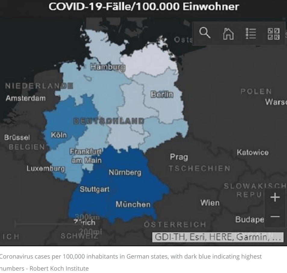 Germany, which has had a mysteriously low Covid-19 mortality rate compared to Spain and Italy, also has a BCG story. The parts of Germany that were formerly in the USSR received BCG vaccinations and, as the map below shows, Covid-19 mortality is lower in those parts of Germany (lighter colors indicate lower Covid-19 mortality).