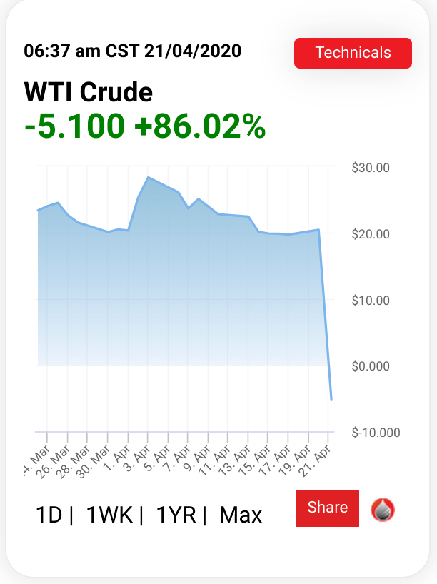 As you might expect, the reduction in travel and office use has upended the energy segment. This Twitter thread records Texas crude dropping from US$8 to less than $US2 per barrel.