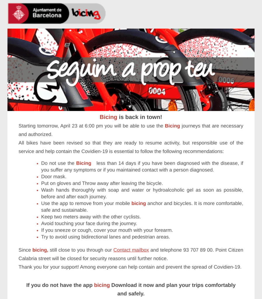 I was more than a little surprised to get this message from Bicing yesterday (translated from Catalan by Google Translate).