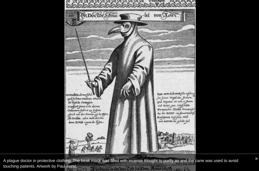 Where did masks come from? A mask story from NPR’s Throughline answers that question and is worth a listen. Masks have been used from at least the time of the Black Plague, but the precursor to today’s medical and industrial masks was invented by Dr. Wu Lien-Teh after the pneumonic plague outbreak in Manchuria in 1910. He demonstrated that masks can stop airborne transmission of a bacterium at a time when germ theory wasn’t very well understood.