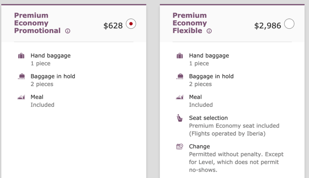 If you book round trip Premium Economy from San Francisco to Barcelona, as any sensible person would, you get two options.