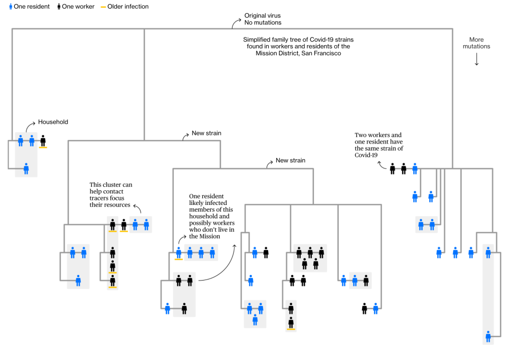 Speaking of keeping outbreaks under control, there are useful tracing techniques emerging from the Covid-19 study in the Mission District of San Francisco. Researchers are now using Mission District data to connect viral mutations of SARS-Cov-2 to social interactions.