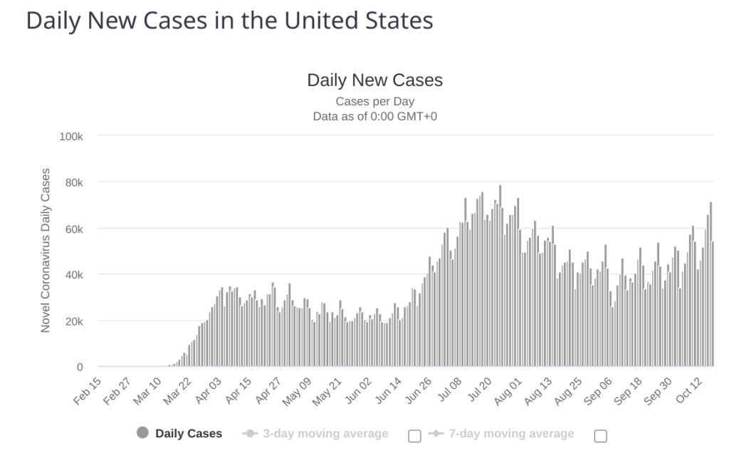 As new US cases surpassed 60,000 per day last week, Trump continues to downplay Covid-19, holding crowded political rallies without mask mandates. Here’s the crowd waiting for him in Wisconsin yesterday. The state is having one of the most serious Covid-19 outbreaks in the US.