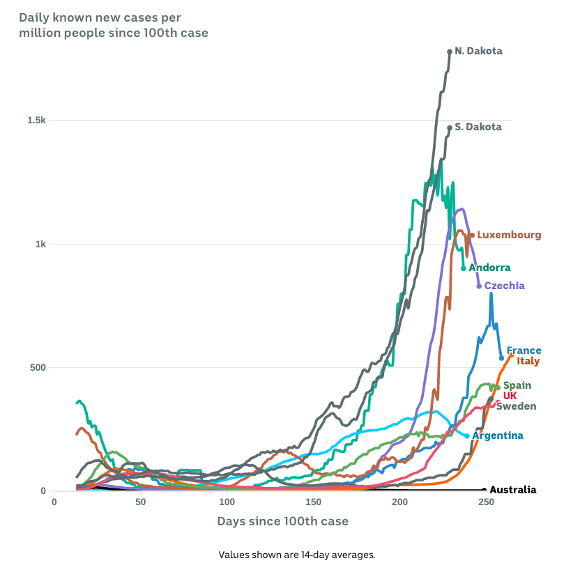 Yet another problem is that this post focuses on one data point that, in the scheme of things, isn’t that important. What’s important? Hospitals and ICUs are out of beds and low on healthcare workers. At this point, IFRs and CFRs are a distraction. You can rationalize as much as you want about how well the US is managing Covid-19, but scarcity of healthcare resources is the high order bit, as they say, for US healthcare right now.